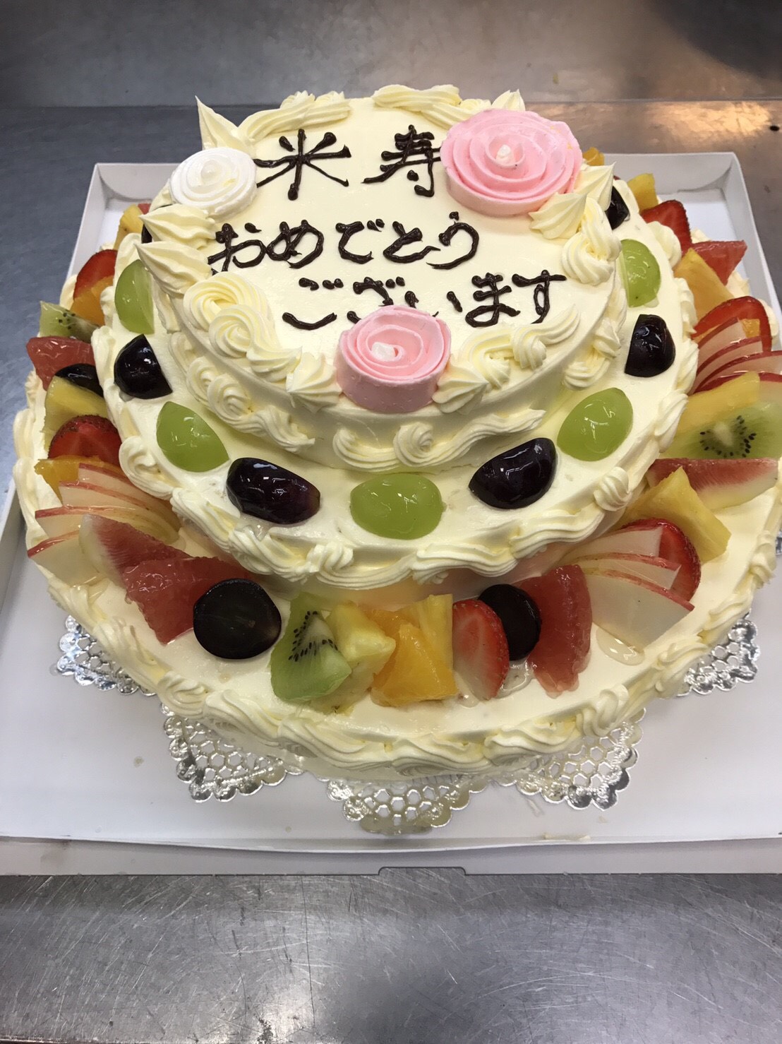 ↑こちらはバタークリームでお作りした特注の3段けーきです 🙂